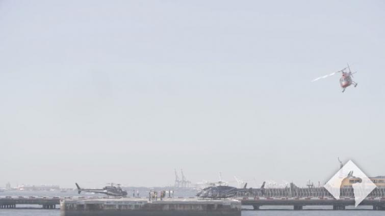 An open shot of a starting helicopter at a heliport in Manhattan, New York. |