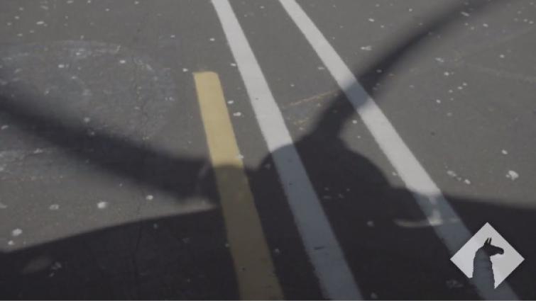 This shot shows the shadow of a moving helicopter rotor at the asphalt in Manhattan, New York. |