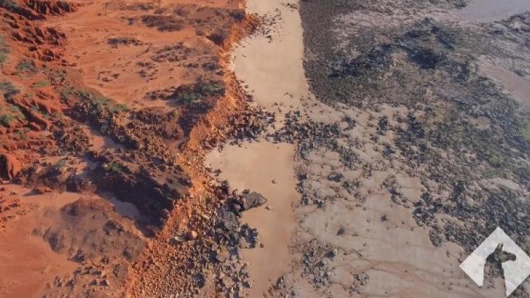 Australia drone broome kimberleys sand beach red cliffs topshot