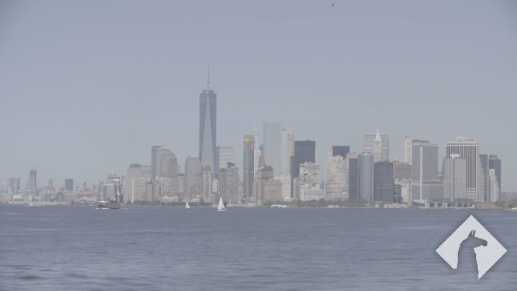 Rooftop nightview above artdeco buldings in New York, Manhattan. |