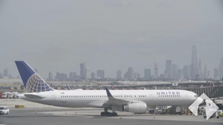 An open view of an airplane on Newark Airport in Manhattan, New York. |