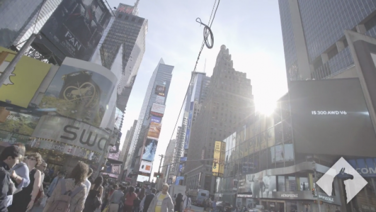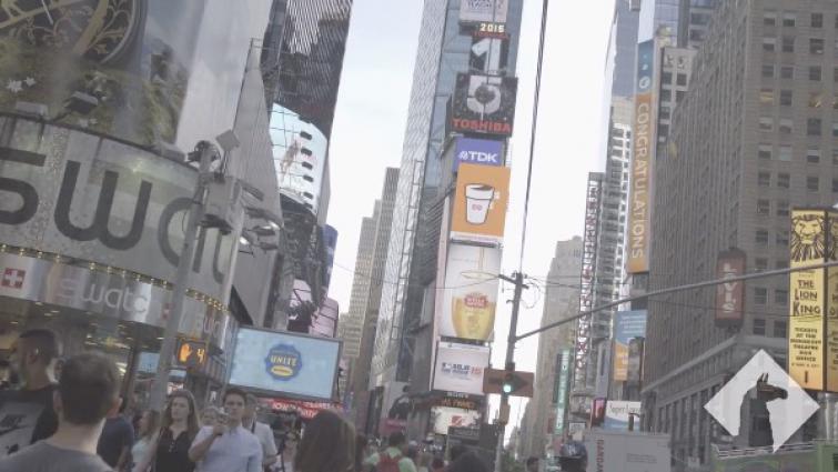 People passing by Timessquare in an urban, sunny scenarie in Manhattan, New York.