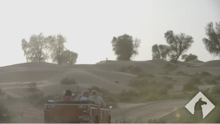 Jeep is driving in the desert