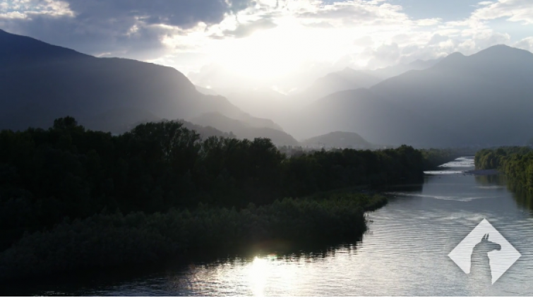 Switzerland Schweiz Drone Mountain Alps LagoMaggiore sunset river left move |