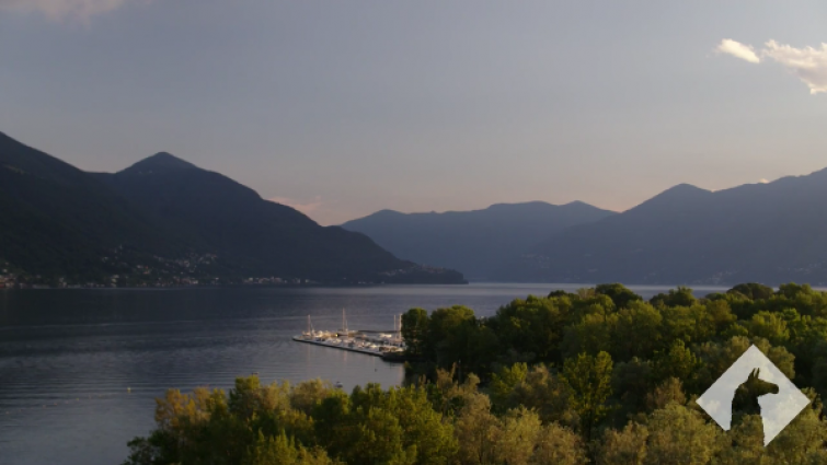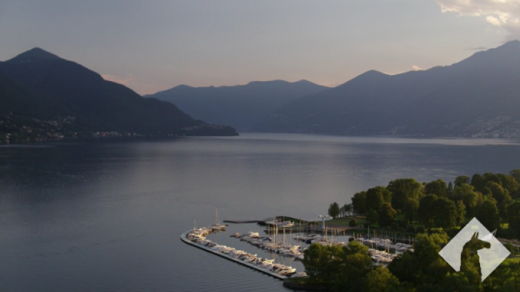 Switzerland Drone Mountain Alps LagoMaggiore sunset left move port |