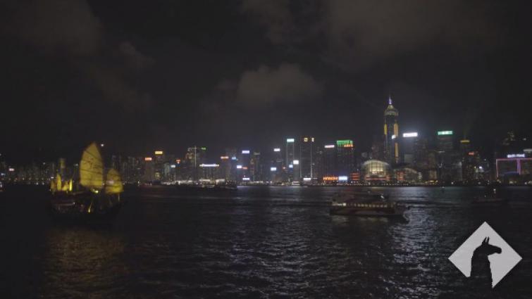 A short open aerial sequence above Halong Bay in Vietnam during sunset.