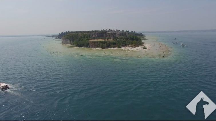 A drone flight above Jumeriah Island in Dubai during a special light atmosphere.