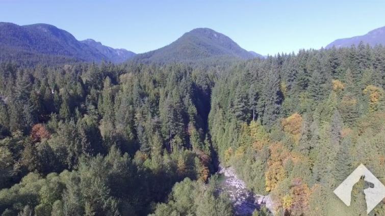 An open view above a forest and mountainous backgrounds in Vancouver, Canada.